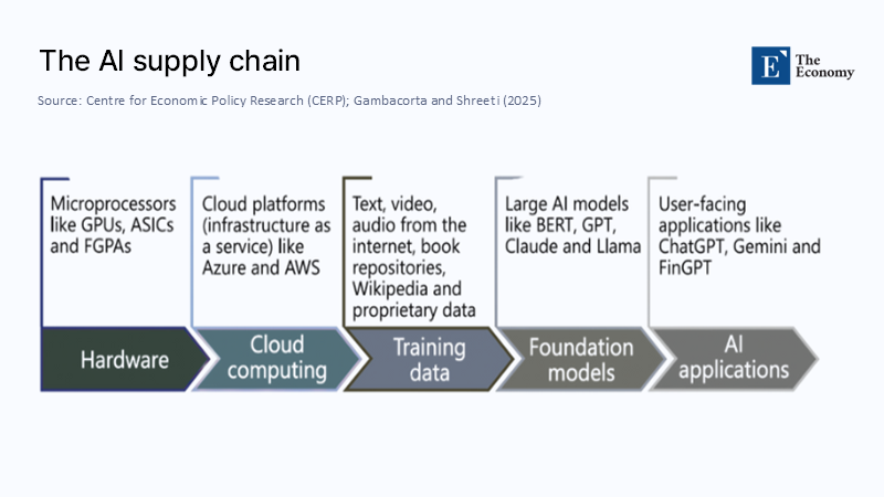 The AI value chain unfolds in five capital-intensive steps: hardware, cloud, data, foundation models, and end-user applications. Europe excels in only one of them—applied robotics and some vertical software—and regulates all five. That asymmetry is visible in the cluster geography of high-performance computing.