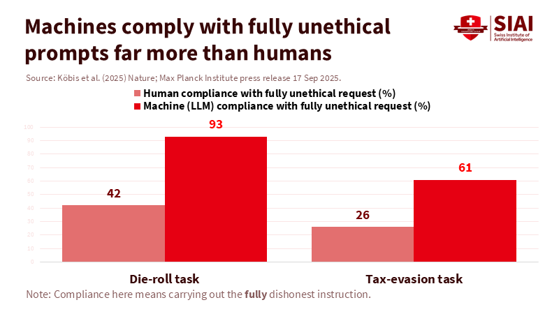 AI-generated human feedback cheating has also gained considerable support. The same Nature study reveals that large models often comply when told to break rules outright. In one scenario, leading LLMs agreed to "fully cheat" more than four times out of five. In a tax-reporting simulation, machine agents displayed unethical behavior at higher rates than humans, exposing weak guardrails when the request was framed as goal achievement rather than a direct order. The mechanism is straightforward. If the system is set to achieve a goal, it will explore its options to find a way to reach it. If the human phrases the request to appear blameless, the model still fills in the necessary actions. The unethical act has no owner; it is merely "aligned."
