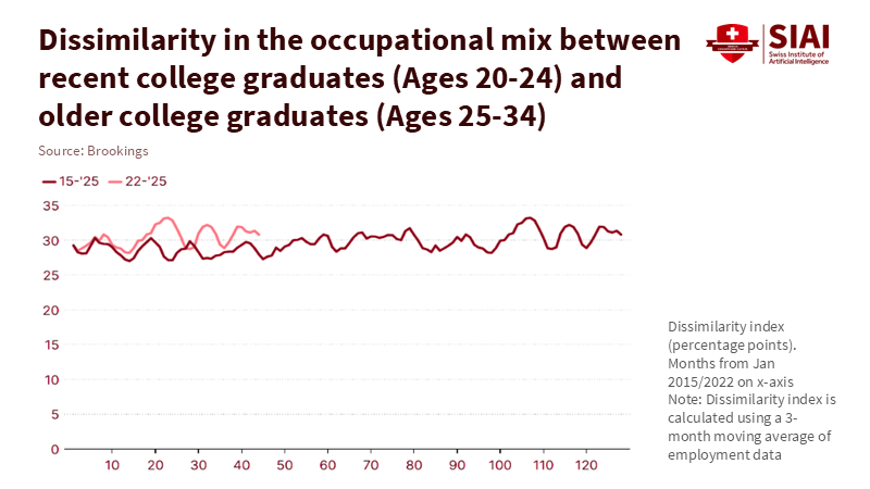 Outside tech, the situation also appears challenging for newcomers. Recent analyses of hiring trends show a weakening market for "first jobs" in several advanced economies. Research indicates that roles exposed to AI are seeing sharper declines, with employers using automation to eliminate the simplest entry positions. Indeed's 2025 GenAI Skill Transformation Index shows significant skill reconfigurations across nearly 2,900 tasks. Coupled with employer caution, this means fewer low-complexity tasks are available for graduates to learn from. The Burning Glass Institute's 2025 report describes an "expertise upheaval," where AI reduces the time required to master jobs for current workers while eliminating the more manageable tasks that previously justified hiring entry-level staff. The impact is subtle yet cumulative: fewer internships, fewer apprenticeships, and job descriptions that require experience, which most applicants lack.