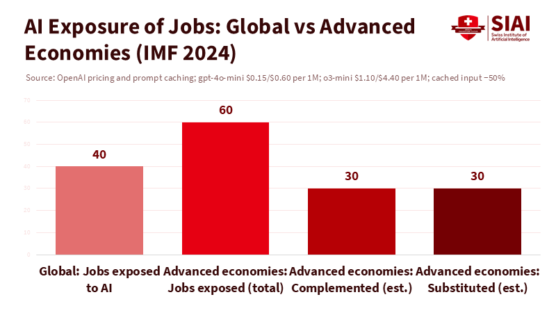 This analogy also helps clarify a common misunderstanding. Many jobs involve a variety of tasks. Chatbots can handle translation, summarization, or produce first drafts. However, they cannot carry equipment, supervise children, calm distressed patients, or fix a boiler. The IMF estimates that about 40% of jobs worldwide are vulnerable to AI, with around 60% at risk in advanced economies, mainly due to the prevalence of white-collar cognitive work. Exposure does not equal replacement. For manual or in-person service jobs, exposure is lower. In cognitively demanding office roles, exposure is higher, but the potential for complementarity is also greater. As with computers, the long-term concern is not a jobless future but a more unequal one if we do not manage the transition effectively.