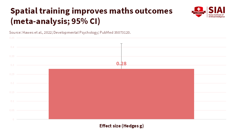 Second, spatial intelligence in education can be developed on a meaningful scale. A 2022 meta-analysis covering 3,765 participants across 29 studies found that spatial training led to an average improvement of 0.28 standard deviations in mathematics outcomes compared to control groups. The benefits were even greater when activities involved physical manipulatives and aligned with the concepts being assessed. This level of improvement, sustained over time, can shift an entire district's progress. Adding work with AR/VR and 3D printing in calculus and engineering in 2024–2025, where controlled studies indicate significant gains in spatial visualization and problem-solving, reinforces this message: when students actively engage with space—whether physical or virtual—their understanding of mathematics deepens.