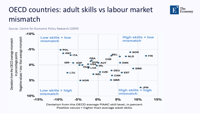 Productivity debates still focus on expanding the human capital supply. Yet, the 2023 update of the Survey of Adult Skills revealed that raw proficiency explains scarcely a quarter of the distance between the OECD median and the frontier. The remainder is accounted for by where and how talent is used. By reframing skills as capital—with returns hinging on allocation efficiency—policymakers can shift their gaze from schooling inputs to the institutional pipes that channel graduates into workplaces.