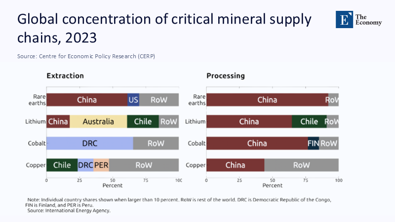 Europe’s competitive problem is no longer just “trade”: it is system risk created by the coupling of China’s technological ascent with dominance in critical inputs. Over two decades, Chinese policy methodically built scale in clean-tech hardware—solar, batteries, electric drivetrains—while consolidating processing and refining of minerals that underpin both the green and digital transitions. The result is a dual exposure: Europe is directly outcompeted in product markets (EVs, batteries, solar modules), while remaining reliant on Chinese processing for components and materials that run through the same value chains. That is a qualitatively new vulnerability, because China can toggle between price and policy power: flood markets when share is the goal, and tighten export spigots when leverage is needed. In the 1940s, a British prime minister liked to say the lion knew the way between the bear and the elephant; in the 2020s, Europe must remember the lesson, because the “bear” now has a partner and the “elephant” is not always aligned with continental priorities.